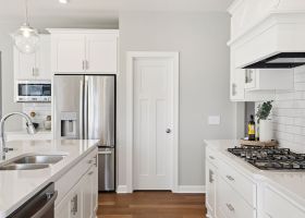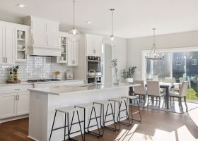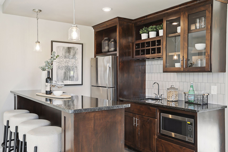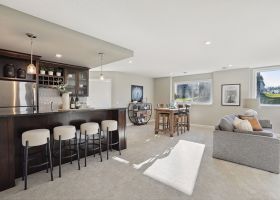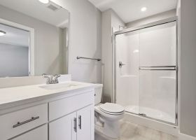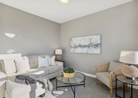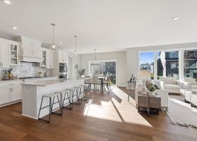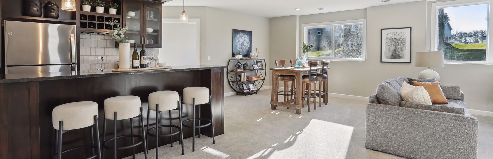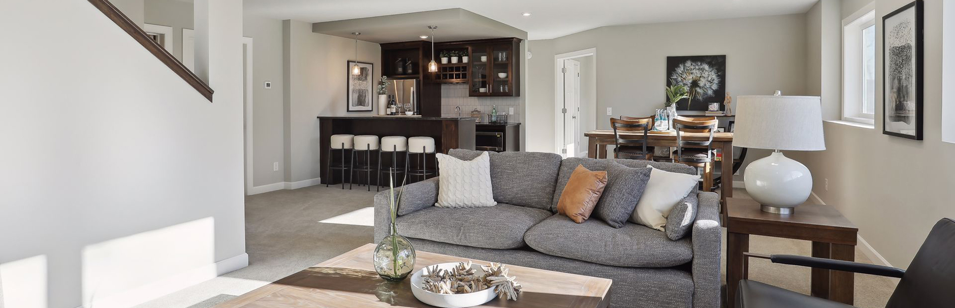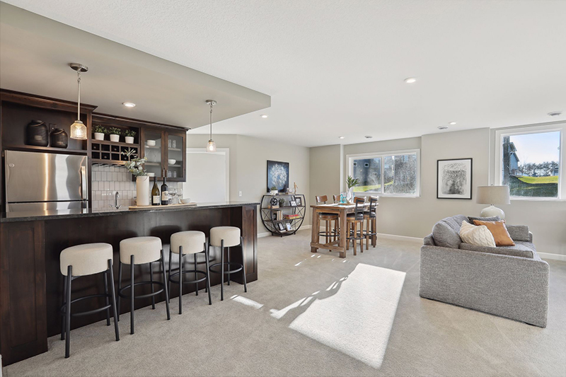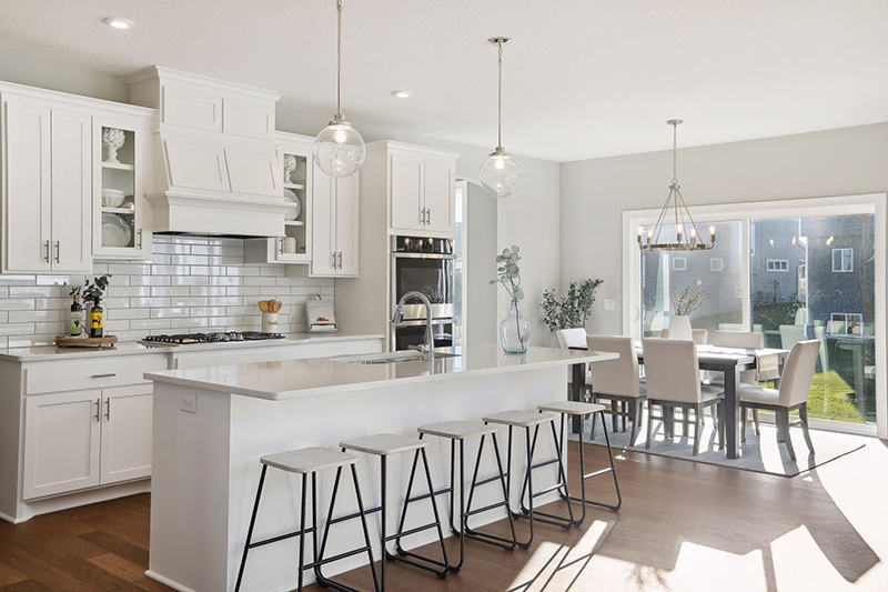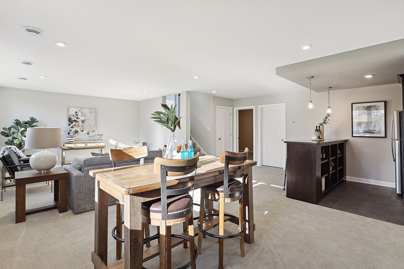 An open and functional main level with our signature flex room and great room with built-in entertainment center and stone fireplace. Upstairs features an Owner’s Suite complete with walk-in double-headed tile shower, freestanding soaker tub, separate toilet room, large walk-in closets. In addition, upstairs has large bedrooms with private baths, pass-through laundry and a hallway linen.