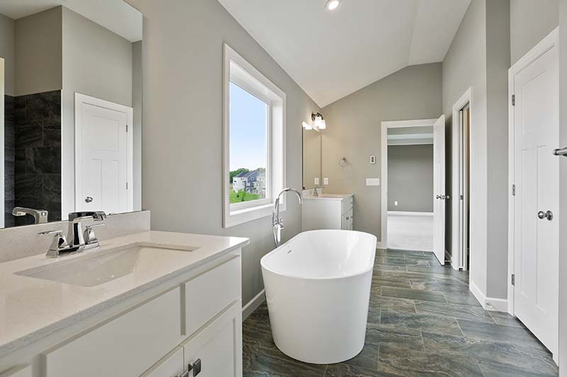 Our Summit design offers a spacious open floor plan with gourmet kitchen, formal dining space, study, our signature flex room and great room with stone fireplace and built-in entertainment cabinet. The functional upper level features an Owner’s Suite complete with walk-in double-headed tile shower, freestanding soaker tub, separate toilet room and bathroom linen along with an oversized his and hers walk-in-closet. Large bedrooms with private baths and pass-through laundry round off the list. The indoor sports zone provides hours of fun, especially in long winter months.