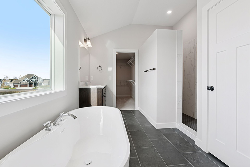 Our Summit design offers a spacious open floor plan with gourmet kitchen, formal dining space, study, our signature flex room and great room with stone fireplace and built-in entertainment cabinet. The functional upper level features an Owner’s Suite complete with walk-in double-headed tile shower, freestanding soaker tub, separate toilet room and bathroom linen along with an oversized dual walk-in-closet. Large bedrooms with private baths and pass-through laundry round off the list.